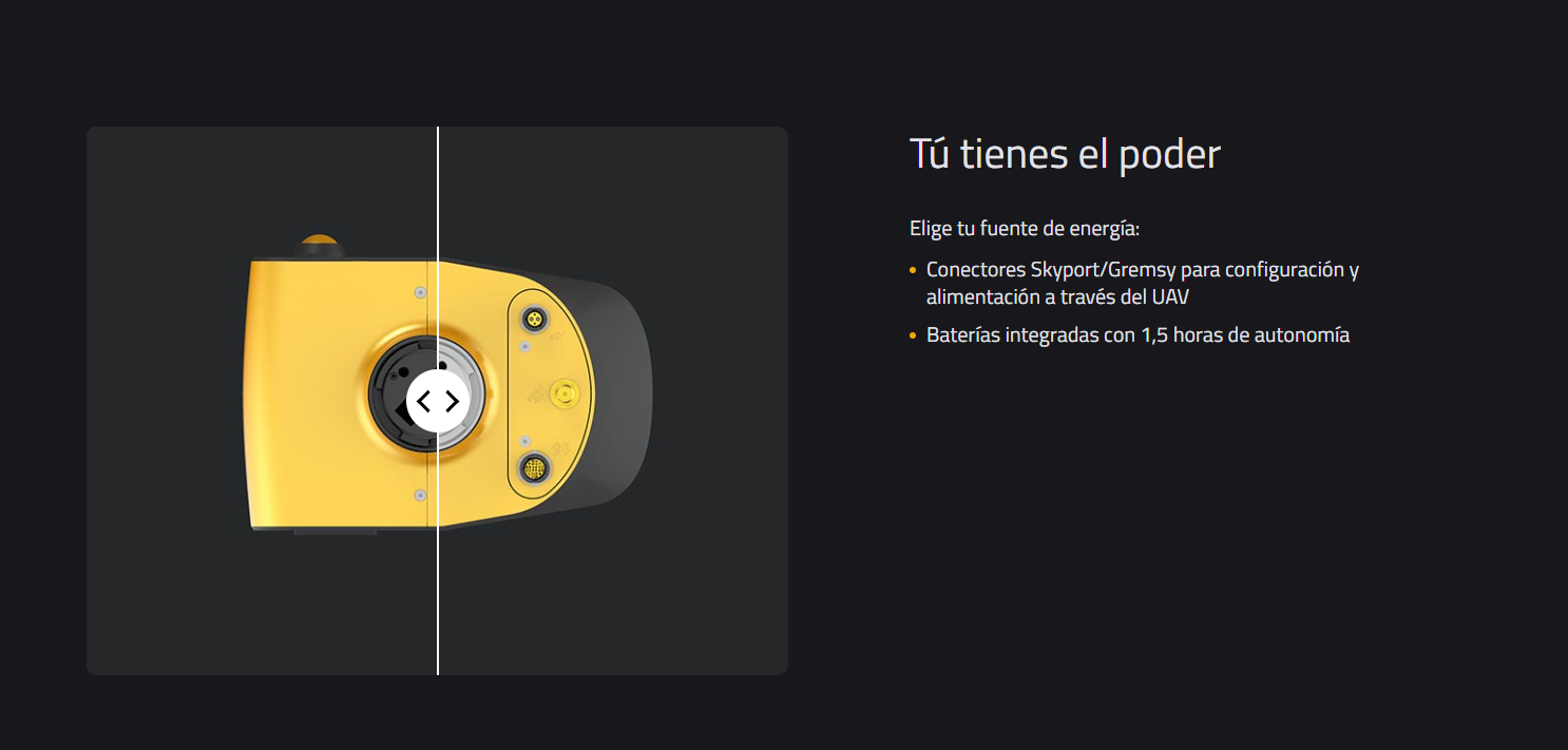 Fácil montaje en una variedad de UAV: drones multirotor, de ala fija o helicópteros. Las integraciones con Gremsy y DJI Skyport, o nuestro soporte de montaje a medida, permiten una configuración rápida para comenzar a mapear rápidamente.