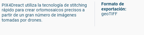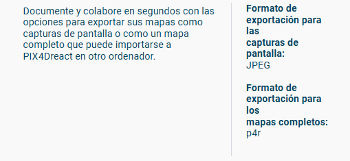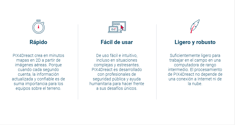 PIX4Dreact crea en minutos mapas en 2D a partir de imágenes aéreas. Porque cuando cada segundo cuenta, la información actualizada y confiable es de suma importancia para los equipos sobre el terreno. De uso fácil e intuitivo, incluso en situaciones complejas y estresantes. PIX4Dreact es desarrollado con profesionales de seguridad pública y ayuda humanitaria para hacer frente a sus desafíos únicos.